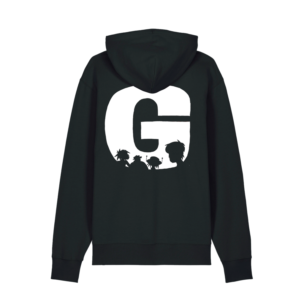 Black hoodie featuring a Big G illustration with the band’s silhouette screen printed on the front and back.