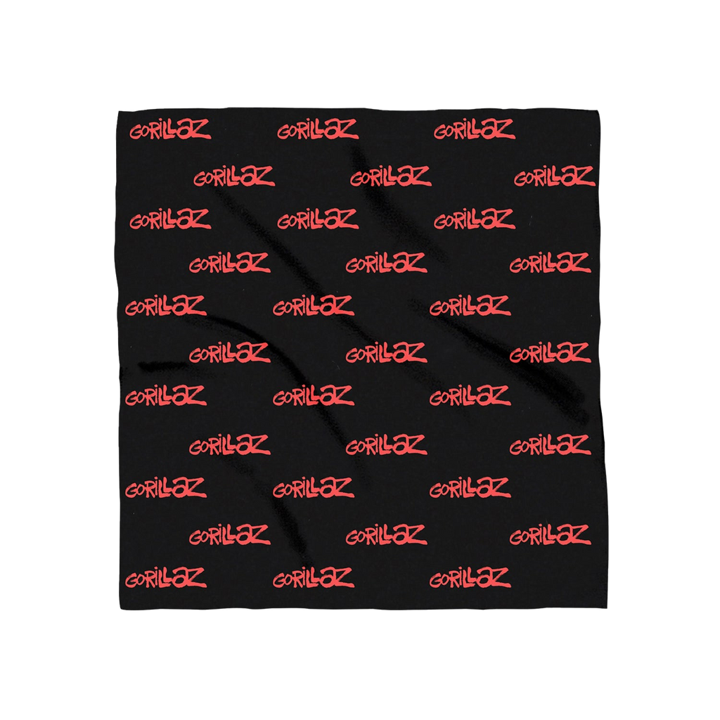 Red Gorillaz logo repeated on a 22” square black bandana.
