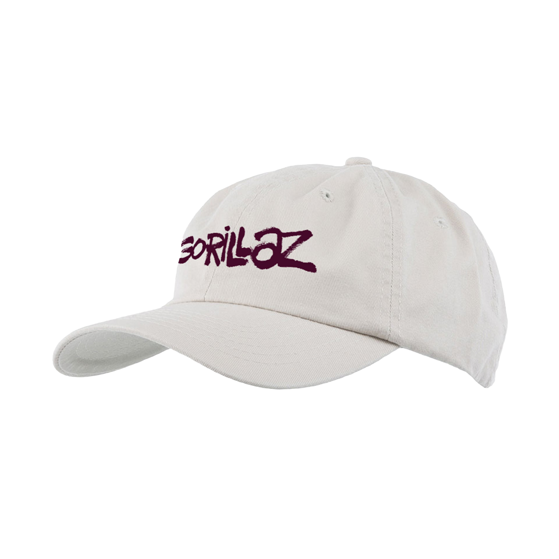 Graffiti logo embroidered on a white unstructured low profile dad hat.Share