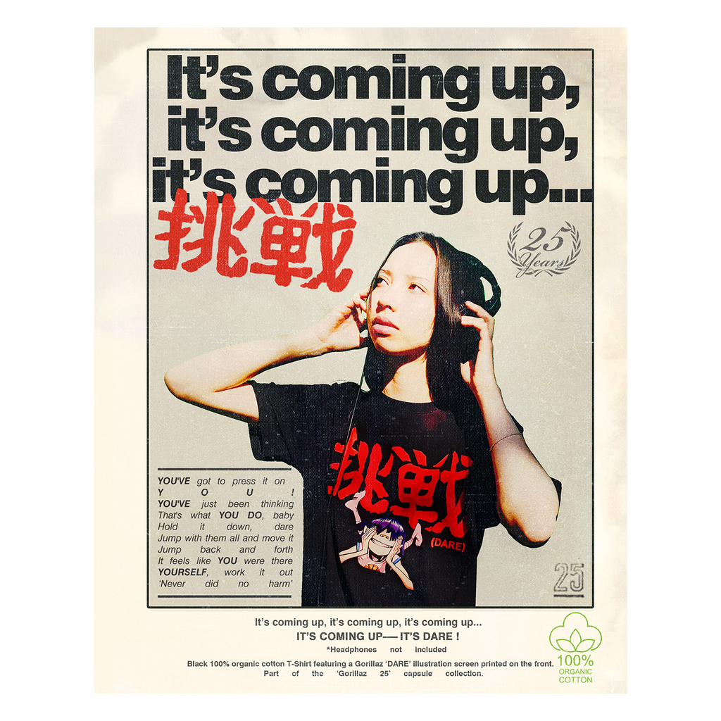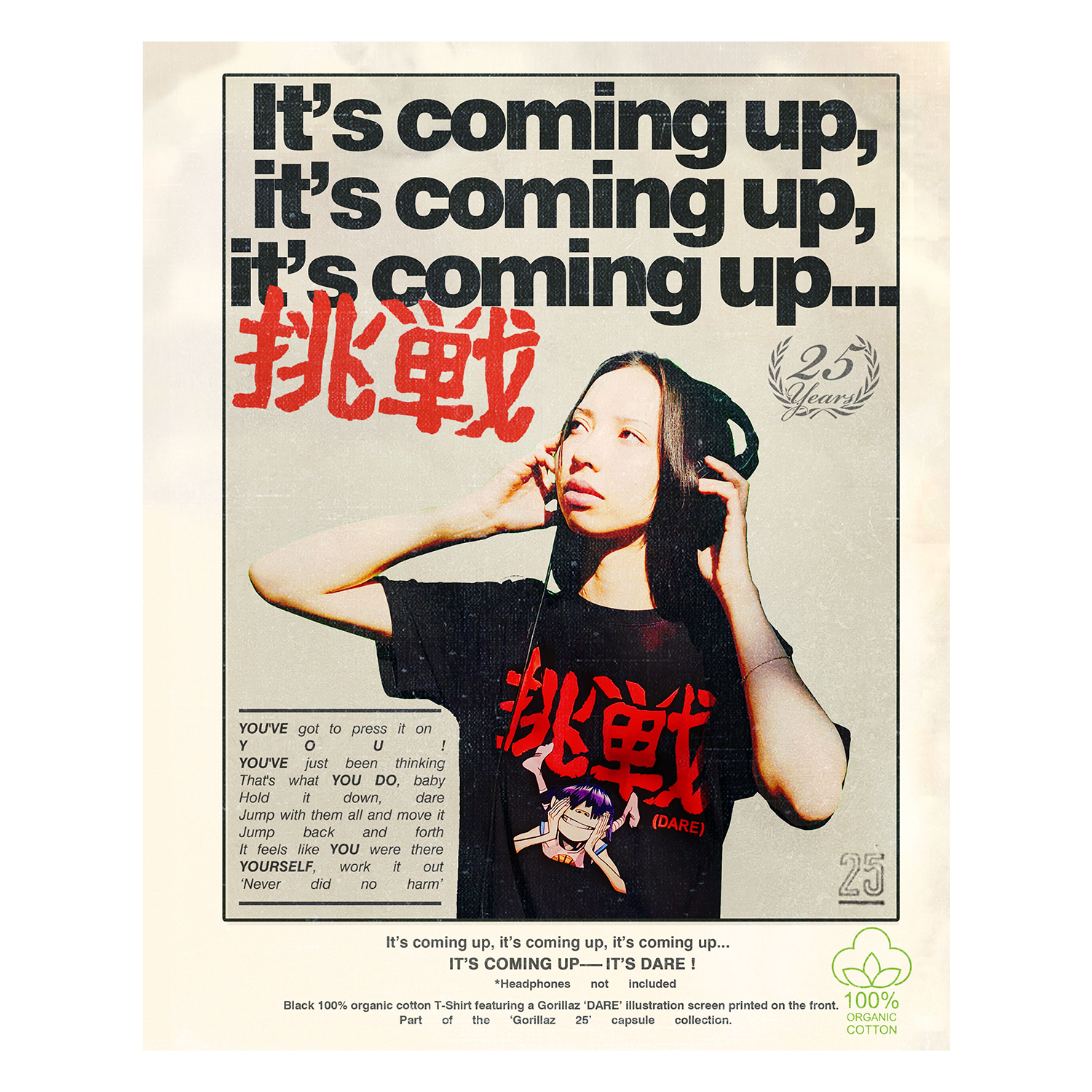 Black 100% organic cotton t-shirt featuring an ‘It's Dare’ illustration screen printed on the front.